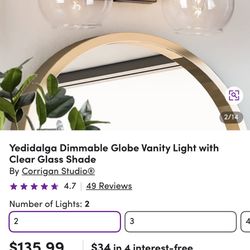 Yedidalga Dimmable Globe Vanity Light With Clear Glass Shade $100Elk Grove, CA