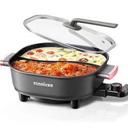 6L Electric Hot Pot with Divider, 1300W, Dual-Flavor Pot for Two Broths, 5-Temp Control & Non-Stick Coating, Electric Pot for Shabu Shabu, Fondue, Per$60Carmichael, CA