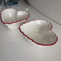 Target Threshold White w/Red Ruffled Edge Valentine Heart Bowl Set/2 NEW 4½"$16Sacramento, CA