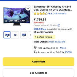 Samsung Odyssey Ark Gaming Monitor 55 inch$1,000Beale Air Force Base, CA