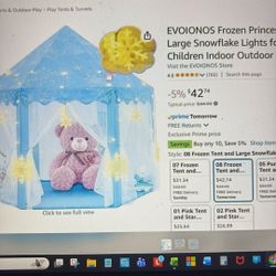 Frozen Princess Tent For Girls-kids Play Tent, Snowflake Lights$25Sacramento, CA