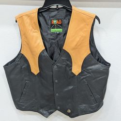 Road #1 Collections Men's Black & Mango Leather Motorcycle Vest Western Style Size 2XL$40Carmichael, CA