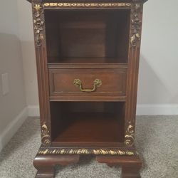 Antique wooden side table/ stand with drawer with gold and brass accents floral carving$125Sacramento, CA