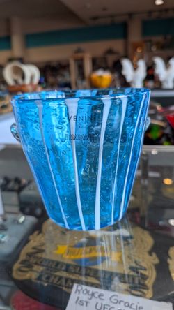 Venini Disaronno Murano Fine Venetian Handblown Art Glass Blue Ice Bucket Stripe$20Elk Grove, CA