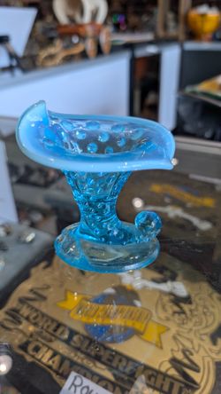 Vintage Fenton Blue Opalescent Hobnail Glass Cornucopia Vase Candleholder Decor$10Elk Grove, CA