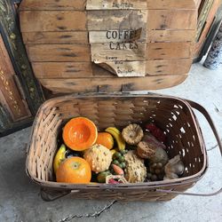 Vintage Woven Picnic Basket w/ Faux Fruit Mid Century Kitchen Decor Set$55Citrus Heights, CA