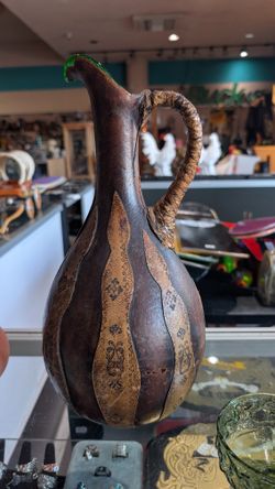 Vintage Leather Wrapped Glass Wine Pitcher Green Spout Decorative Ewer Display$20Elk Grove, CA