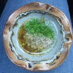 art Pottery Down To Earth green and blue tea-light burner Trinket Dish Ashtray w/ Crackled Glass Center $30Elk Grove, CA