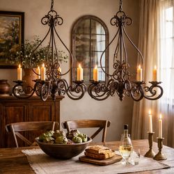 Pair Vintage Wrought Iron Chandeliers Rustic Spanish Style 6 Light Hanging Fixtures Ornate Scroll Metal Lighting$180Citrus Heights, CA