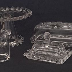 Imperial pedestal cake stand, Imperial Candlewick Votive candle holder, Miniature Butterdish and Imperial rectangular butter dish $75Rancho Cordova, CA