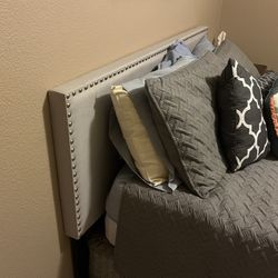 QUEEN SIZE MATTRESS SET WITH GRAY CLOTH COVERED BED FRAME$300Sacramento, CA