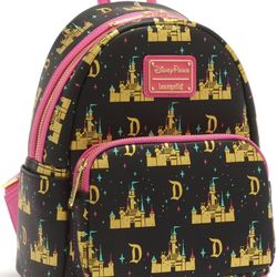 New Disneyland Loungefly Sleeping Beauty Castle Pink/Black/Gold Mini Backpack$100Carmichael, CA