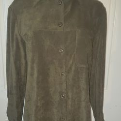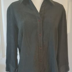 Harvé Benard Suede Green Button Down Long Sleeve Blouse (Size S)