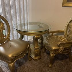 Elegant Dining Table with Gold Wood Base and Glass Top + 6 Chairs$300North Highlands, CA