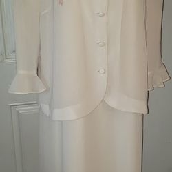 Karin Stevens 2-Piece Light Peach Floral Formal Long Sleeve Dress (Size 14)