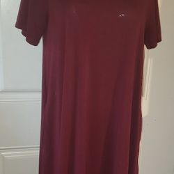 Burgundy/Maroon Short Sleeve Dress with Two Side Pockets (Size M)