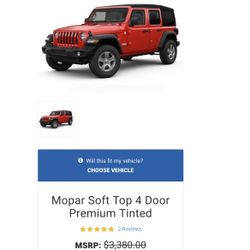 Mopar Jeep Wrangler JLU Factory Soft Top$800Elk Grove, CA