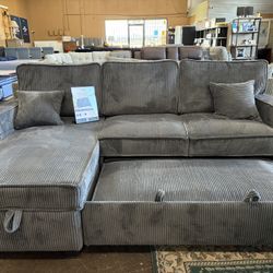 Gray Corduroy Sectional with storage ottoman $795North Highlands, CA
