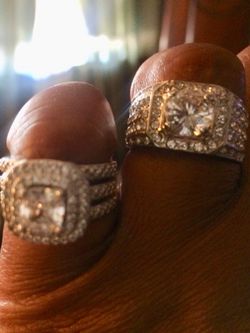 HIS AND HERS BEAUTIFULLY CRAFTED RINGS STAMPED 925 STERLING SILVER WITH WHITE TOPAZ, WOMANS SIZE 6 AND MEN SIZE 9.$60Sacramento, CA