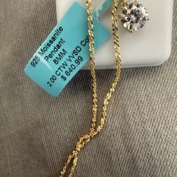 8MM 2Ct Moissanite Diamond Pendant On A 22” Twisted Rope Chain All Set In Solid 925 Sterling Silver $65Auburn, CA