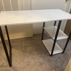 White Marble Look Desk With Black Frame And Shelves $75Roseville, CA