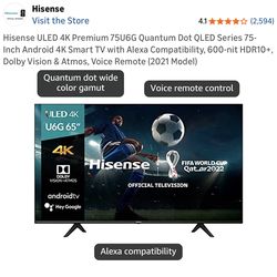 55 Inch Hisense ULED U8N 4K HDR Smart TV$185Ontario, CA