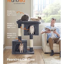 Heybly Cat Tree with Toy, Cat Tower Condo for Indoor Cats, Cat House with Padded Plush Perch, Cozy Hammock and Sisal Scratchi Reg. Retail Price $59.99$36Pico Rivera, CA