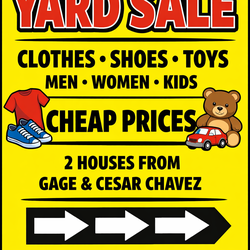 Yard Sale 3/7 & 3/8– Clothes, Kids Shoes & Toys – Near Gage & Cesar Chavez$1Los Angeles, CA
