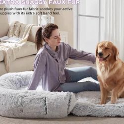 Human Dog Bed - 71"x45"x12" Fits You & Pets, Washable Faux Fur, Orthopedic, Plump Pillow, Blanket, Strap - Grey $65Rancho Cucamonga, CA