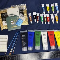Art Supply Lot Acrylic Paint Gold Leaf Brushes Kit Storage Box Bundle $35Torrance, CA
