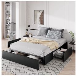Allewie Full Size Platform Bed Frame with 3 Storage Drawers, Faux Leather Upholstered, Wooden Slats Support, No Box Spring Needed, Easy Assembly, Blac$89Corona, CA