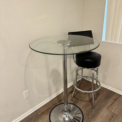 Round Glass Top LED Bistro Bar Table - Chrome With Chair 🪑 $60Rancho Cucamonga, CA