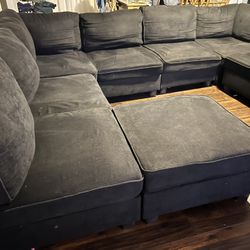 Black Onyx Plush Corduroy Sectional with ottoman and accent pillows 99x99 pick up can deliver $550Rancho Cucamonga, CA