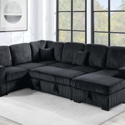 Gorgeous 2-Pc Black Corduroy Sectional Sofa With Storage, Pullout Bed, & USB Port$399Los Angeles, CA