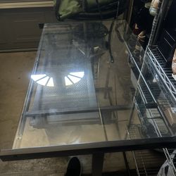 Lucite, Brass & Glass Sawhorse Dining Table or Desk $450Los Angeles, CA