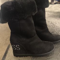 Black suede mid-calf GUESS boots w/ rhinestone and fur trim.$40Anaheim, CA