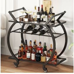 Modern Black Bar Cart with Glass Shelves & Wheels | 2-Tier Rolling Serving Cart with Wine Rack for Kitchen & Dining Room$99Alta Loma, CA