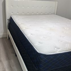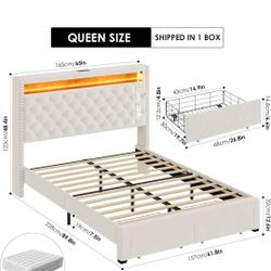 Queen Bed Frame w/ LED Lights Storage Headboard & Charging Station - Upholstered Platform Beige$150Ontario, CA