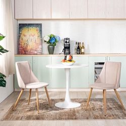 Homy Casa Clift 3PC Dining Set, 31.5” White Round Table with 2 SMEG High Back Upholstered Dining Chair in Beige Fabric$149Rancho Cucamonga, CA