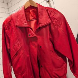 Vintage 80s Red Leather Jacket Genuine Retro Hide Triller Bomber W Shoulderpads 80s Small/Medium$120Long Beach, CA