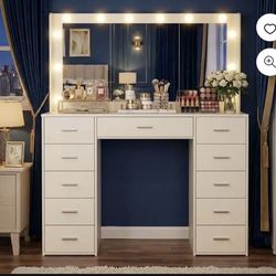 New in the box Vanity Desk with Mirror and Lights, Large Makeup Vanity Table Set with Drawers, White Lighted Vanity for Bedroom, Dressing Table for Te$120Yorba Linda, CA