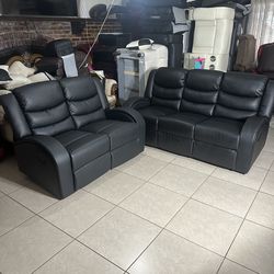 Black faux leather 2 piece reclining sofa and loveseat set$499Phillips Ranch, CA