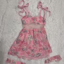 New xl pink beaded sequin floral short dress boho festival lace fairy short rave$50Upland, CA
