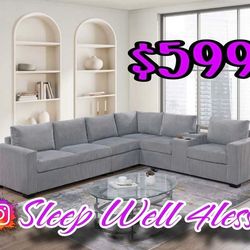 106” New Plush Gray Sectional, Sectional And Storage Ottoman, Sectionals, Sofa, Couch, Gray Couch, Grey Couch, Corduroy Sectional, USB Charger Sofa Di$499Anaheim, CA
