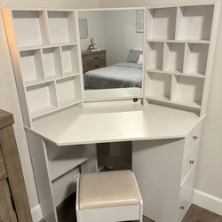 Premium Corner Makeup Vanity Table + Stool (Excellent Storage)$250Santa Ana, CA
