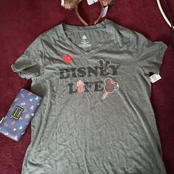 Disney Park Women's "disney Life" Gray Graphic V-neck T-shirt Women's size XL NWT Limited Edition* Disney Parks Food Icons Wallet by Loungefly NWT And$160Montebello, CA