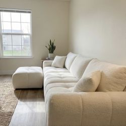 White Teddy Bear Sectional Sofa With Ottoman $550Los Angeles, CA