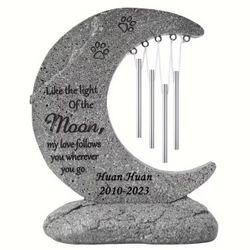 Personalized Custom Pet Memorial Stone — Featuring Moon and Wind Chime Motifs. Suitable for Outdoor Pet Grave Markers or Indoor Display. A Touching Pe$20San Gabriel, CA