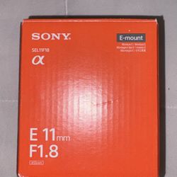 SONY E 11mm F1.8 APS-C Ultra Wide Angle Prime Lens$500Rialto, CA