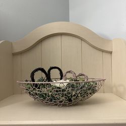 Light Rose Pink Wire Basket With Faux Greenery & Grapevine Hearts Decor đź’•$10Norwalk, CA
